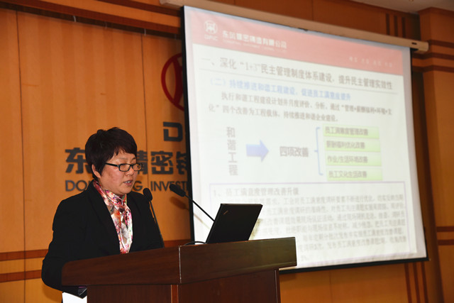首先,總經理杜孔明作題為《為突破性推進公司創新發展而努力》2016年度工作報告,會議隨后聽取了《2016年提案工作報告及員工滿意度課題達成情況報告》、《領導班子評議工作報告》以及《關于認真貫徹總經理工作報告的決議》,黨委書記、工會主席孫長虹作了《2016年度工會委員會工作報告》、《和鼎公司2016年收益情況通報》及《工會經費審查報告》。