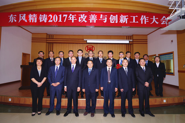 5月4日上午9:00,東風(fēng)精鑄召開2017年改善與創(chuàng)新工作大會,東風(fēng)汽車零部件(集團)有限公司領(lǐng)導(dǎo)班子、職能部門部長及所屬子公司總經(jīng)理、黨委書記,東風(fēng)精鑄全體中高管、專業(yè)技術(shù)人員及員工代表出席大會。