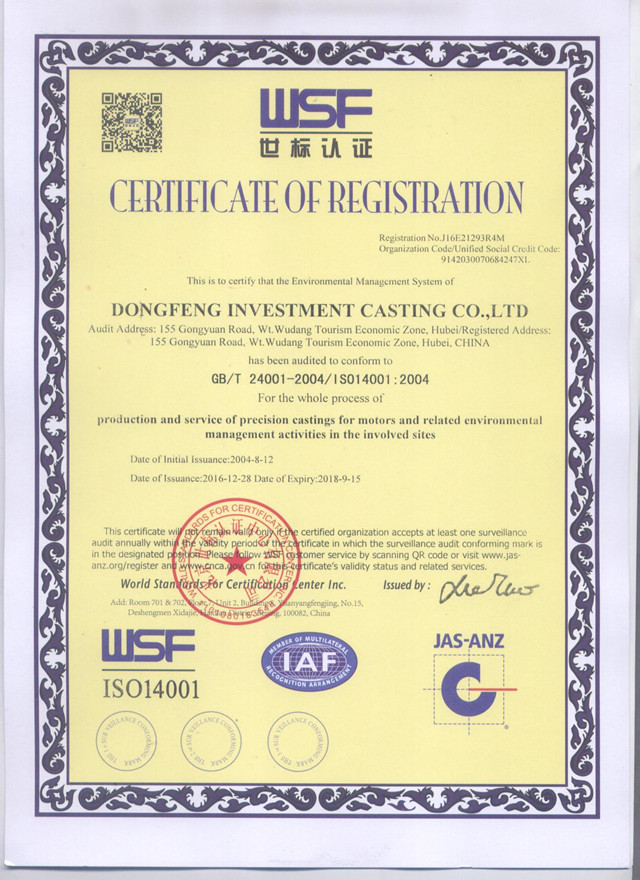 首次認證時間:2004年8月,最近復審時間2016年12月